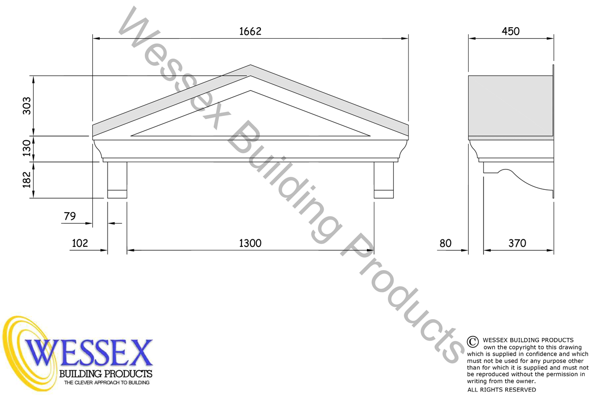 GRP apex replica lead roof entrance door canopy manufactured with feature fascia, soffit and integrally moulded scroll brackets. The roof has an integral flash / fixing up-stand. Manufactured from lightweight long lasting low maintenance GRP materials. Wessex apex replica lead roof entrance door canopies are manufactured in two component parts roof and base which are factory assembled and laminate bonded to form a complete lightweight unit that is virtually maintenance free. The canopy is delivered pre-finished and is easy and economical to install..
