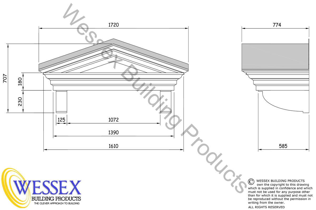 GRP apex replica lead roof entrance door canopy manufactured with feature fascia, soffit and integrally moulded brackets. The roof has an integral flash / fixing up-stand. Manufactured from lightweight long lasting low maintenance GRP materials. Wessex apex replica lead roof entrance door canopies are manufactured in two component parts roof and base to form a complete lightweight unit which is virtually maintenance free. The canopy is delivered pre-finished and is easy and economical to install..
