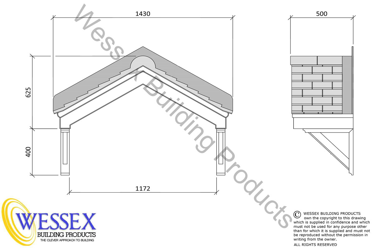 The entrance door canopy is a simple but surprisingly effective feature on any home, which can totally transform the front elevation of the building. Wessex entrance door canopies have been developed to allow individual and architectural tastes to be expressed for both refurbishment and new-build projects. Manufactured from lightweight long-lasting low maintenance GRP materials. Wessex apex GRP replica tile entrance door canopies are manufactured in two component parts which are factory assembled and laminate bonded to form a complete unit. The canopy is delivered ready to install, installation is quick and easy following the Wessex installation guide. Maintenance of your Wessex entrance door canopy is not required apart from periodic cleaning to remove any dirt or grubby marks with a damp cloth and household non-abrasive detergent. Wessex Building Products have been manufacturing entrance door canopies for over 35 years and found that GRP canopies installed and exposed to the elements and natural light for periods in excess of 10 years will not suffer any significant change in the physical properties of the canopy. Life expectancy beyond 40 years can be expected.