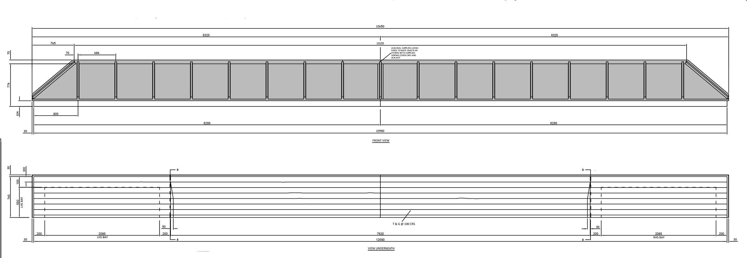 This is a modular product which can be produced in various lengths to suit the lead roll spacing. The ceiling has simulated T & G boarding with a wood grain effect finish.