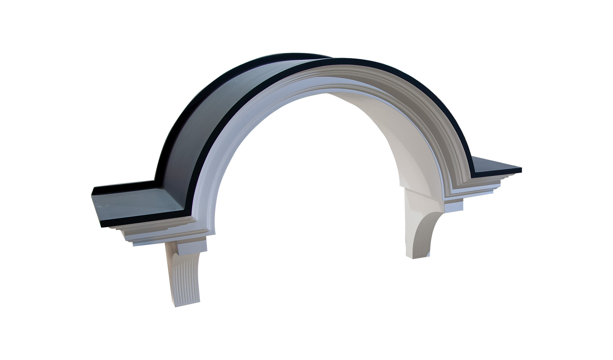 Wessex GRP Semi-circular replica lead roof entrance door canopy manufactured with feature fascia and soffit. Complete with integrally moulded scroll brackets. The roof has an integral flash/fixing up-stand. Manufactured from lightweight long-lasting low maintenance GRP materials. Wessex semi-circular replica lead roof entrance door canopies are manufactured in two component parts roof and base which are factory assembled to form a complete lightweight unit that is virtually maintenance-free. The canopy is delivered pre-finished and is easy and economical to install.