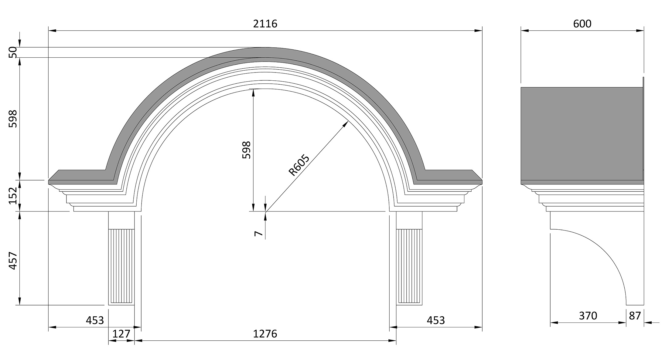 Wessex GRP Semi circular canopy with replica lead roof. Size 590 x 2030mm