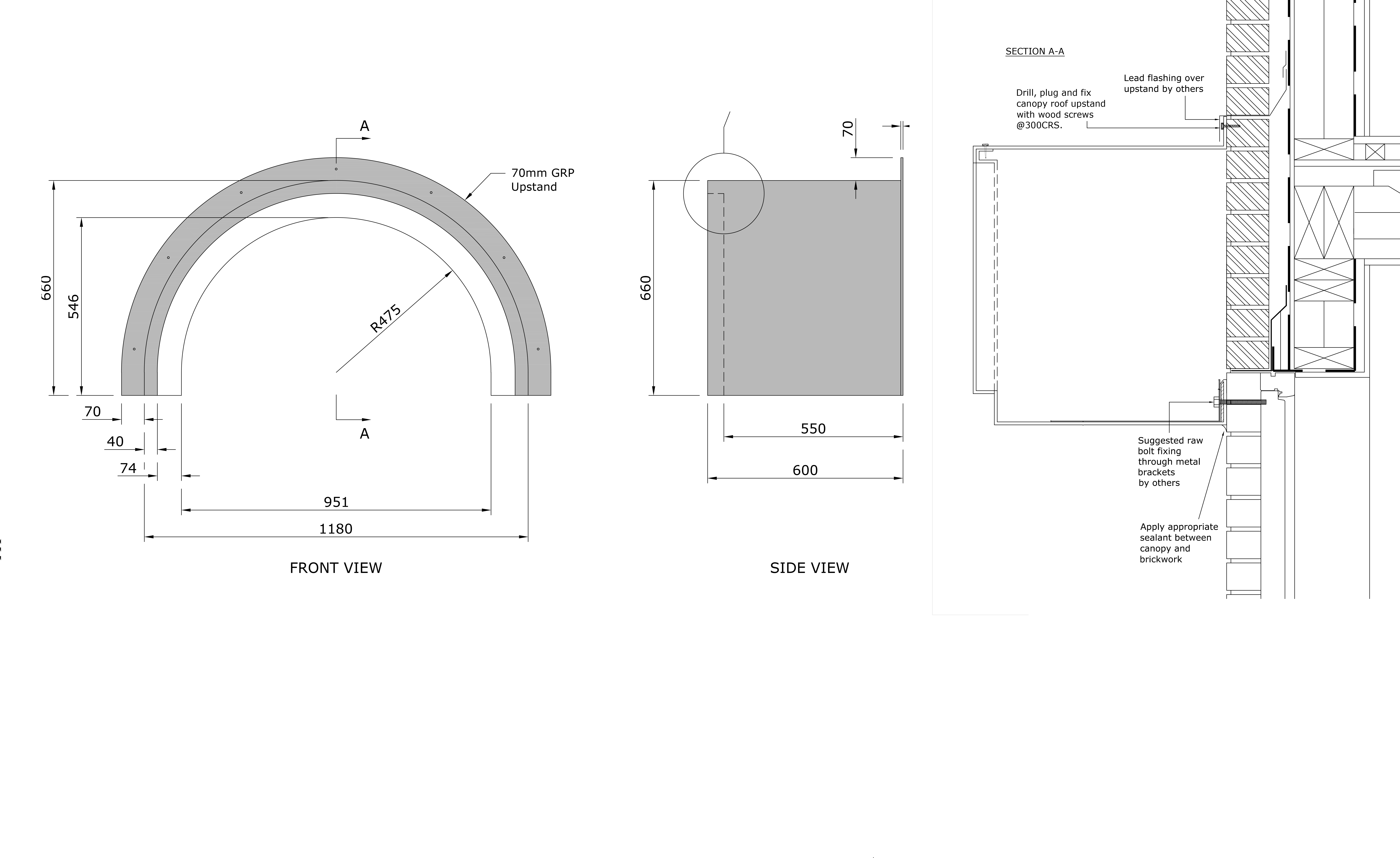 Wessex GRP Lacock semi-circular replica lead roof entrance Porch Canopy, manufactured with moulded fascia and curved soffit. The canopy has an integral flash / fixing up-stand, and is manufactured from lightweight long-lasting low maintenance GRP materials. Wessex curved replica lead roof entrance Porch Canopies are manufactured in two component parts roof and base which when assembled form a complete lightweight unit which is virtually maintenance free. The canopy is delivered pre-finished and is easy and economical to install