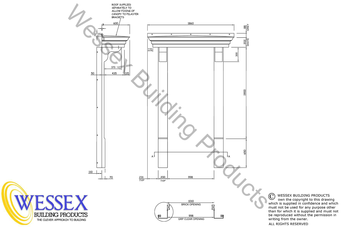 Images are for illustration purposes only.The Windsor features surround details combined with entrance canopy and has been designed to reproduce elegant period and modern features The surround is manufactured from lightweight long lasting low maintenance GRP materials. Each surround comprises of three component parts, Canopy head and two Pilasters having feature moulded brackets. The surround is manufactured in our standard white colour with grey roof to the canopy all in a smooth mat surface finish