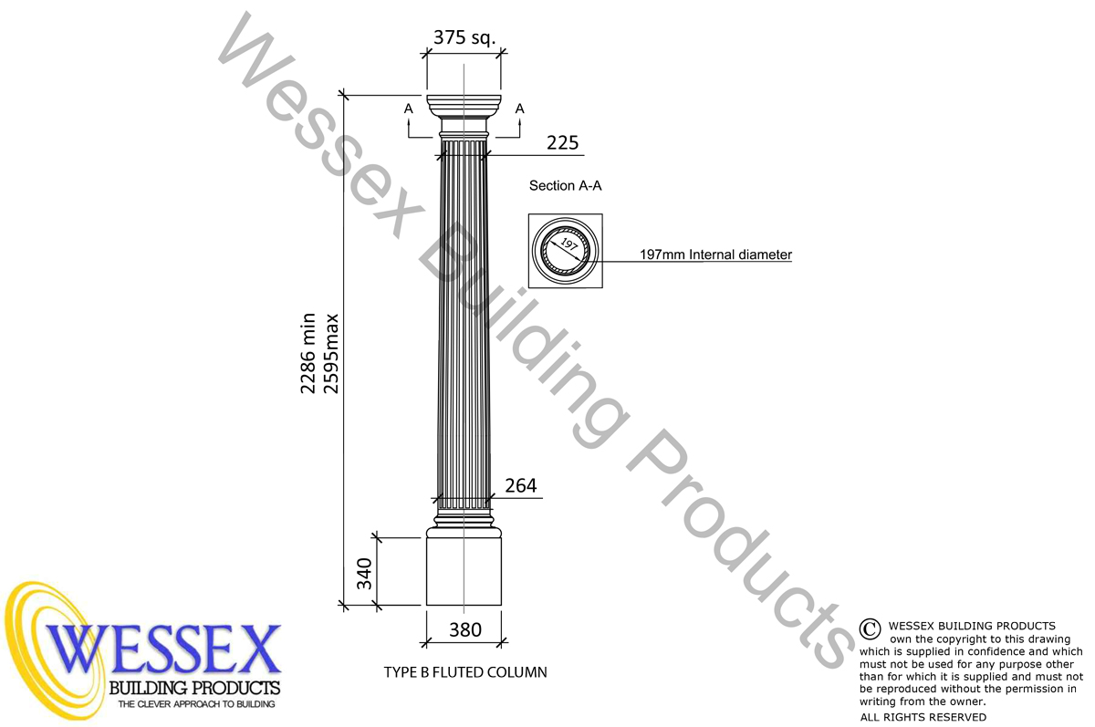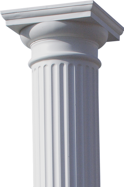 Wessex Type B, Fluted Doric column, manufactured in pre-finished white GRP. Maximum height 2590mm which can be reduced by cutting down the plinth box by up to 300mm