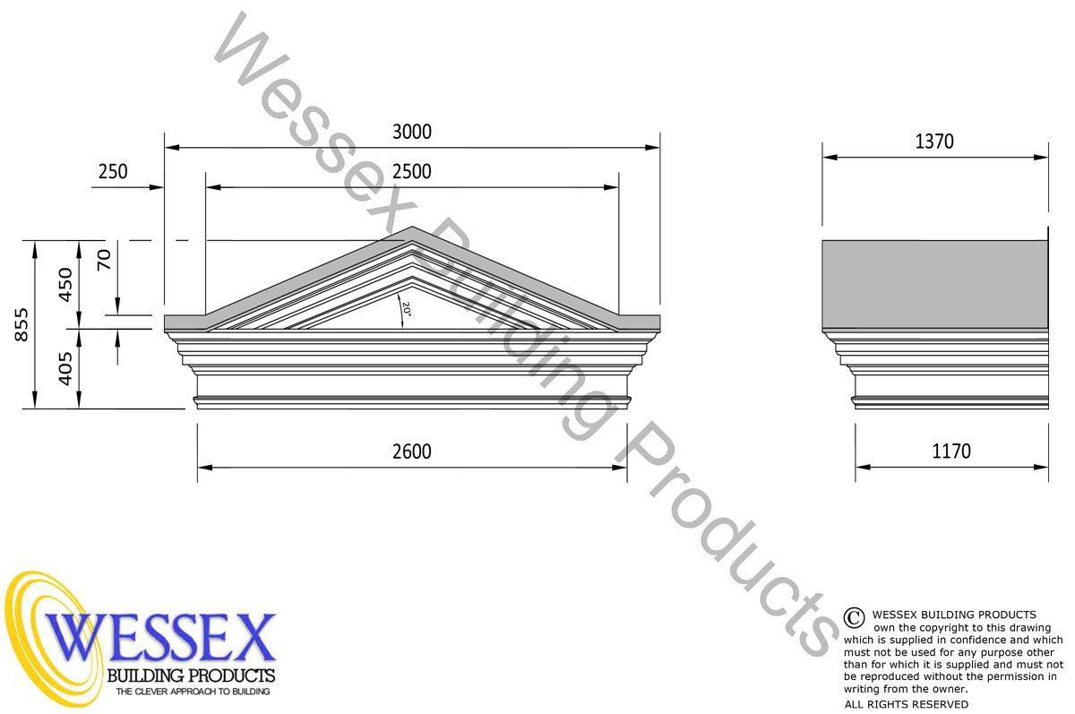 Wessex Radstock Style GRP Pediment replica lead roof entrance portico 3000 x 1370mm Shown with type A Columns