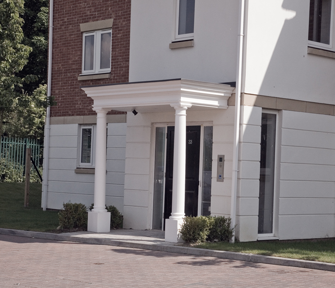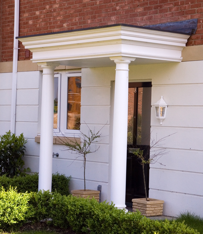 Wessex GRP entrance porticos are manufactured in two component parts roof and base which are then factory assembled to form a complete unit, delivered ready to install. Installation of Wessex entrance porticos is quick, easy and cost effective. To complete your portico entrance there is also available a choice columns and pilasters. Maintenance of your Wessex entrance portico is not required apart from periodic cleaning to remove any dirt or grubby marks with a damp cloth and household non abrasive detergent.