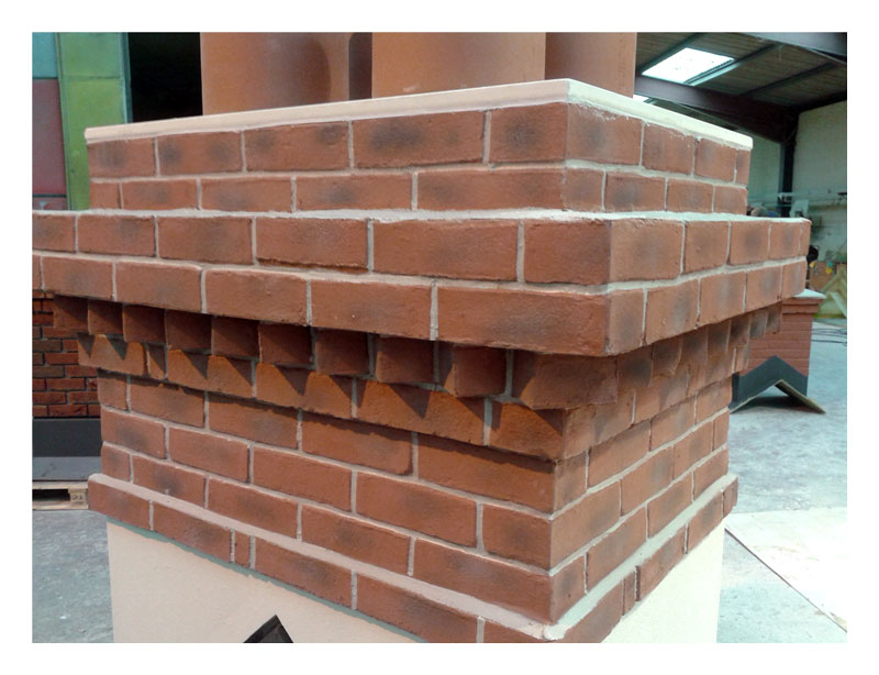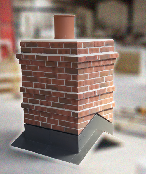 Quickstack - Light replica brick chimneys are styled with standard corbelling details and can be coloured to resemble the actual brick and stone  materials used on the main construction of your building.