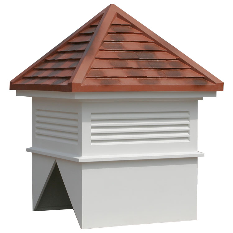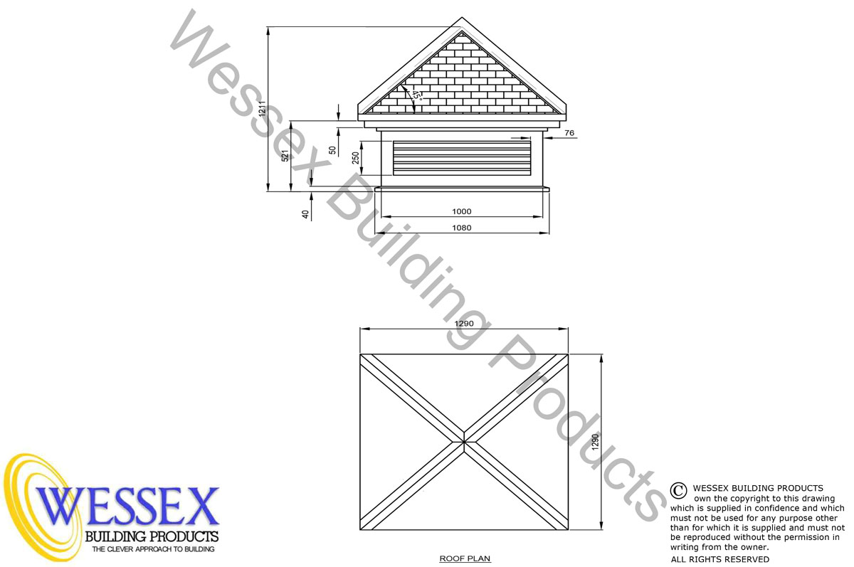 Wessex Louvre Roof Turret 1000 x 1000mm square . Featuring replica tile roof. This Roof Turret is available with a choice of moulded matching dummy or fully working louvers and an optional separate matching base box which can be trimmed out on site to suit any roof pitch.