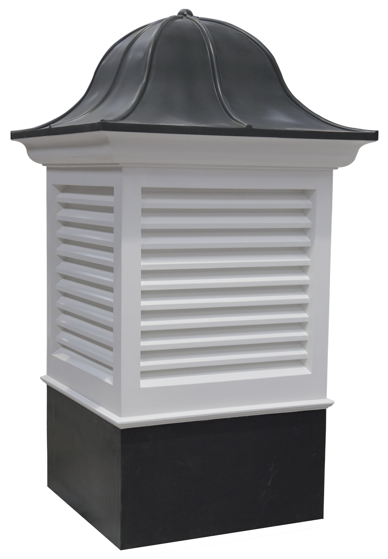 The Wessex WBP - 70107 GRP dovecote tower with OG curved replica lead roof manufactured with moulded side paneling including integral dummy louvers.. Optional extras include Lead effect base unit, weather vanes, finials, clocks and working Louvre vents. Wessex GRP dovecote towers have been developed to allow individual and architectural tastes to be expressed for both refurbishment and new-build projects.