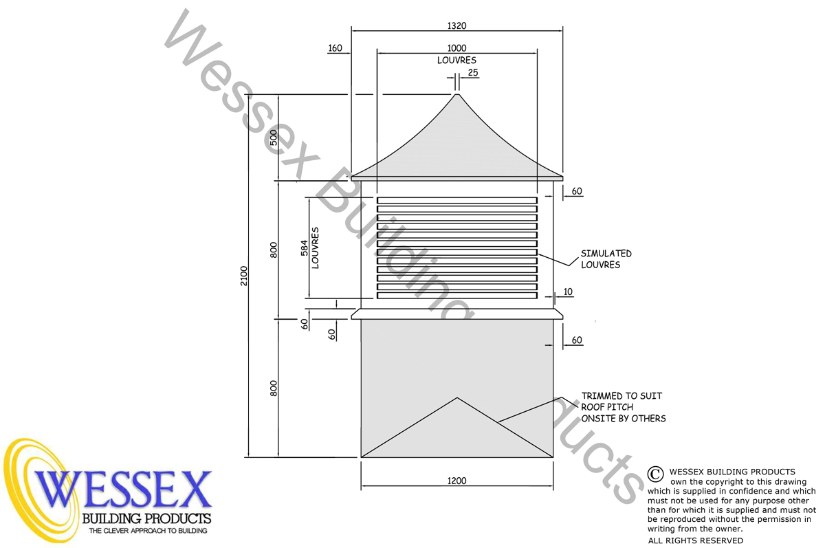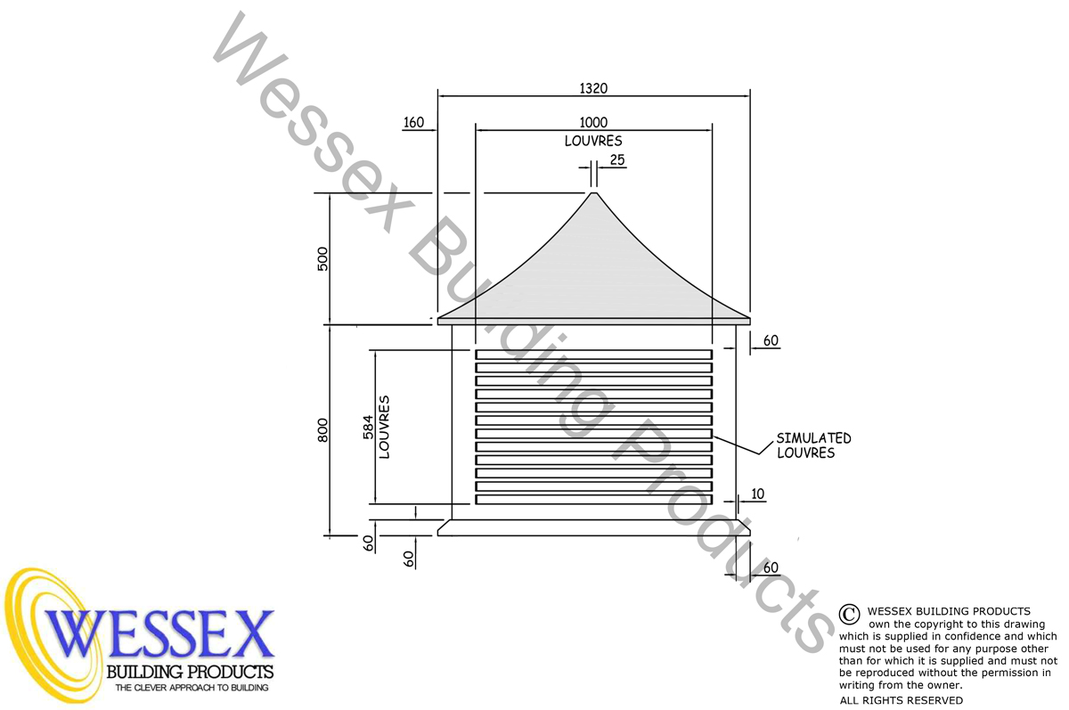 The Wessex WBP - 70110 GRP dovecote tower with concave replica lead roof manufactured with moulded side paneling including integral dummy louvers.. Optional extras include weather vanes, finials, clocks and working Louvre vents. Wessex GRP dovecote towers have been developed to allow individual and architectural tastes to be expressed for both refurbishment and new-build projects.