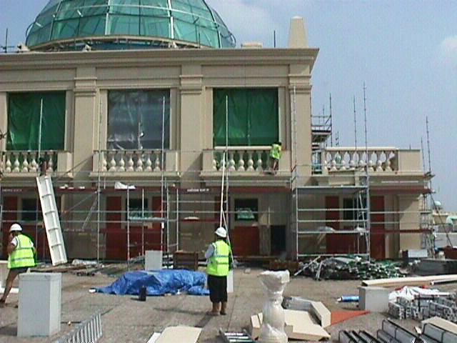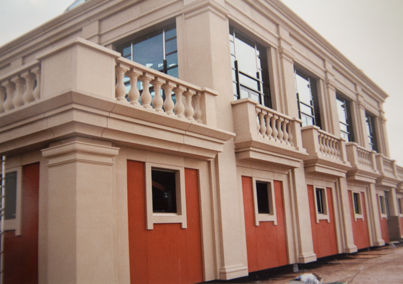 The Glass Reinforced Plastic element was the largest contract of its kind in Europe. Following the tender and formal selection process we were invited to provide a preliminary design concept and produce a full size mock-up of a complete elevation section comprising of Ashlar panelling, Cornice and Balustrade to demonstrate the finish and interfacing details. The lower half of the complex is predominantly constructed with a facing of Pre-Cast Reconstituted Stonework and therefore essential that the GRP cladding element matched and harmonised completely with the Reconstituted Stonework.