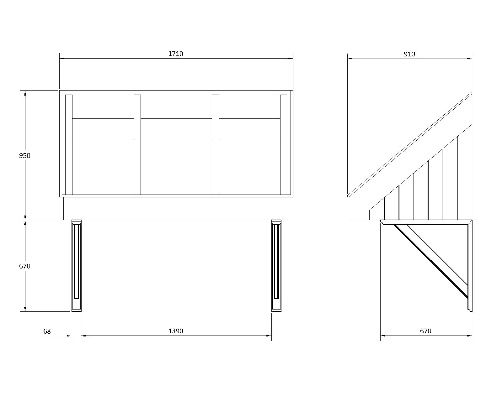 Wessex Mono pitch entrance door canopy base unit incorporating pre-fitted treated timber roof truss rafters laminate bonded to form an integral part of the canopy structure ready to receive on Site batten and roof tiling installation. The canopies moulded fascia, soffit and end panelling are manufactured with wood-grain effect with simulated tongue and groove detailing. The canopy is Supplied complete with two separate type ( WBP:19112 ) plaswood gallows brackets.