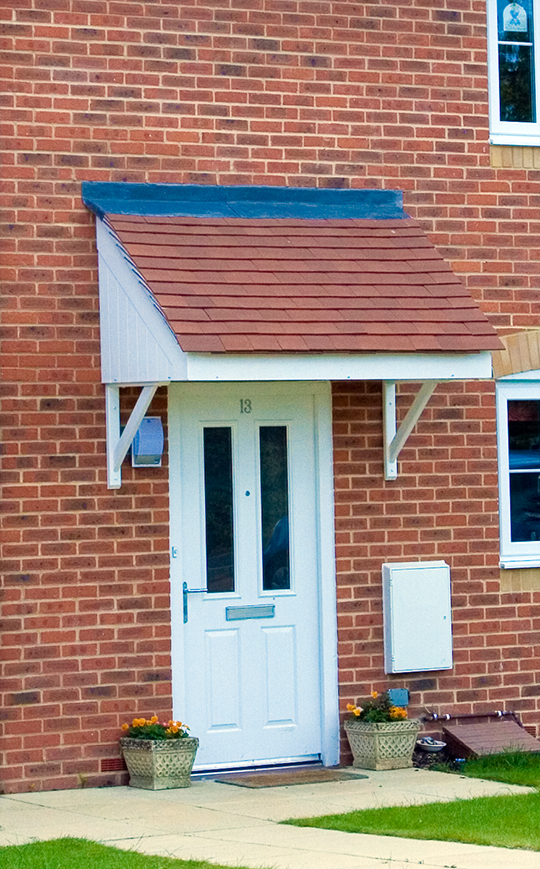 The entrance door canopy is a simple but surprisingly effective feature on any home, which can totally transform the front elevation of the building. Wessex entrance door canopies have been developed to allow individual and architectural tastes to be expressed for both refurbishment and new-build projects. Manufactured from lightweight long lasting low maintenance GRP materials. The canopy truss rafter base unit is delivered ready to install, installation is quick and easy following the Wessex installation guide. Maintenance of your Wessex entrance door canopy base fascia and soffit is not required, apart from periodic cleaning to remove any dirt or grubby marks with a damp cloth and household non abrasive detergent. Wessex Building Products have been manufacturing entrance door canopies for over 28 years and found that GRP canopies installed and exposed to the elements and natural light for periods in excess of 10 years, will not sufferer any significant change in the physical properties of the canopy. Life expectancy beyond 30 years can be expected.